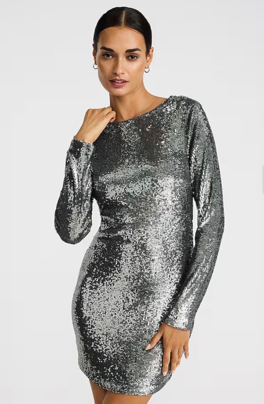 Express Sequin Boat Neck Long Sleeve Low Back Dress Size L
