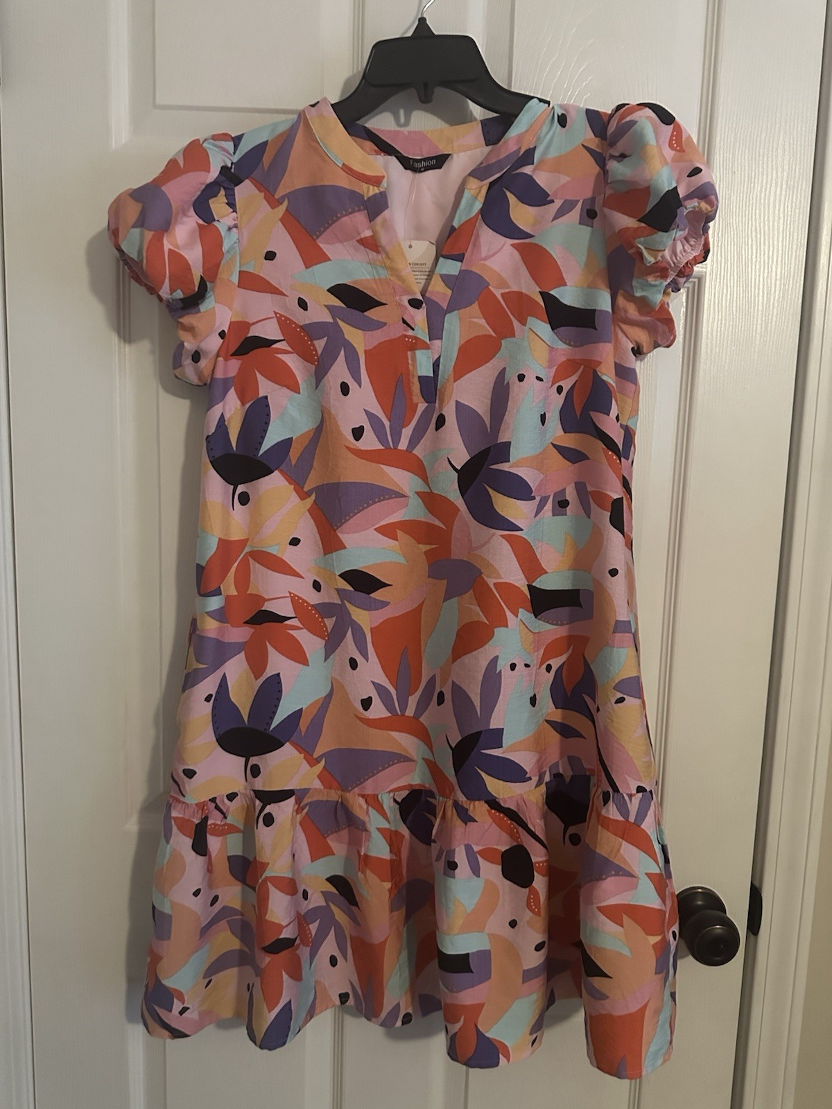Fashion Dress Size [Specify] Multicolor Floral Puff Sleeve Short A-Line Pockets...