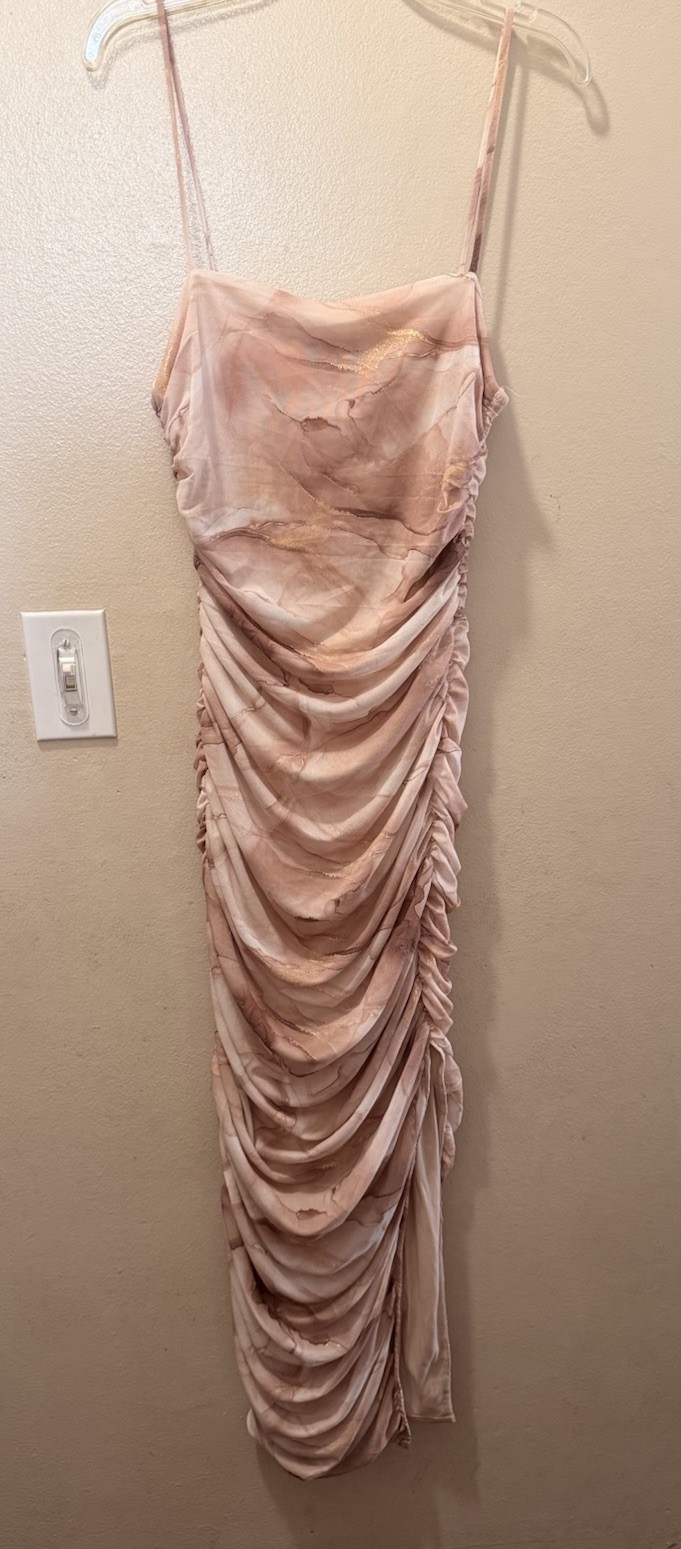Blush Pink Ruched Strappy Sleeveless Maxi Dress Straight Neck Juniors S