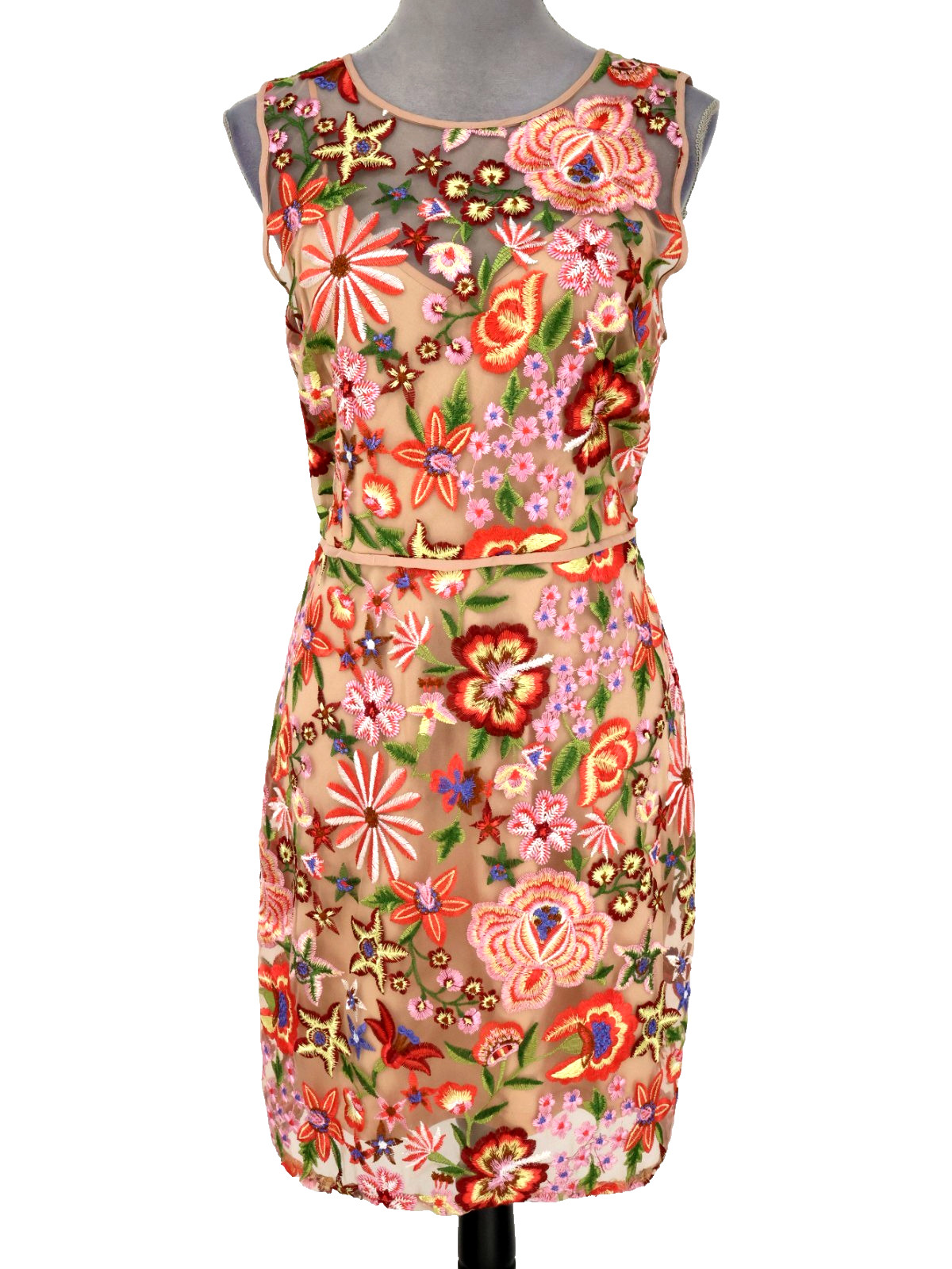 Sam Edelman Dress Women's 12 Pink Floral Embroidered Mesh Camisole Lined Back Zip Party Cocktail Wedding